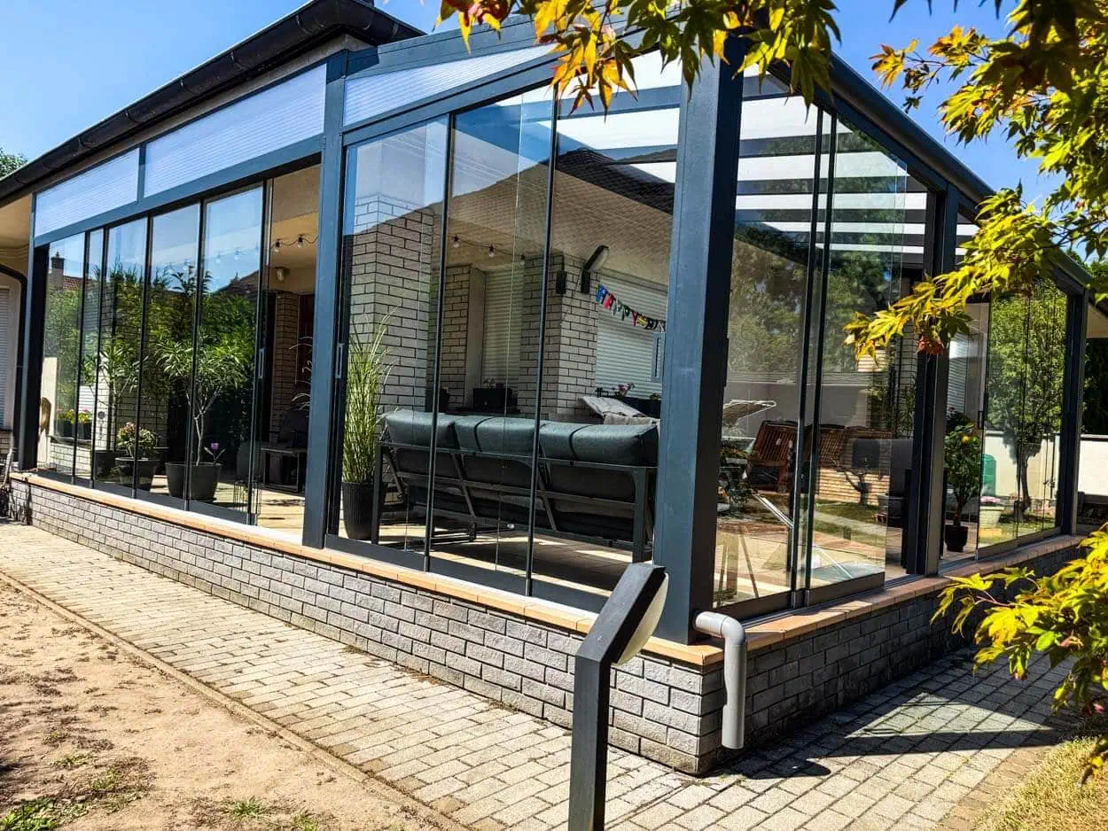 A Serbán Terasztető télikertjei 10 mm vastag ESG edzett biztonsági üveggel készülnek, alumínium keretbe rögzítve, így maximális stabilitást és átláthatóságot kínálnak.